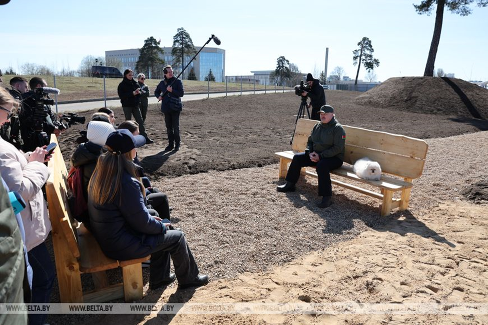 Кіраўніка дзяржавы сустрэлі прадстаўнікі Беларускага рэспубліканскага саюза моладзі, якія перадалі яму капсулу з пасланнем. Ва ўрачыстай абстаноўцы Аляксандр Лукашэнка заклаў яго ў камень.