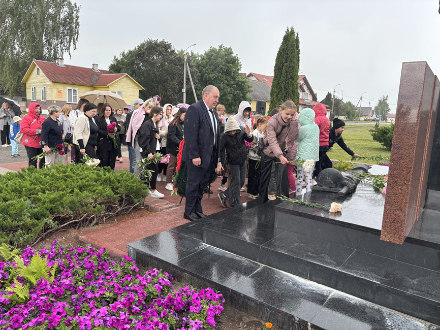 Памяць аб тых, хто не вярнуўся з вайны дадому, удзельнікі мерапрыемства ўшанавалі Хвілінай маўчання – хвілінай цішыні, напоўненай смуткам і падзякай, пасля чаго былі ўскладзены кветкі да помніка.