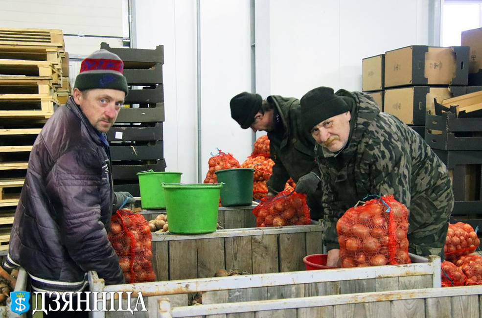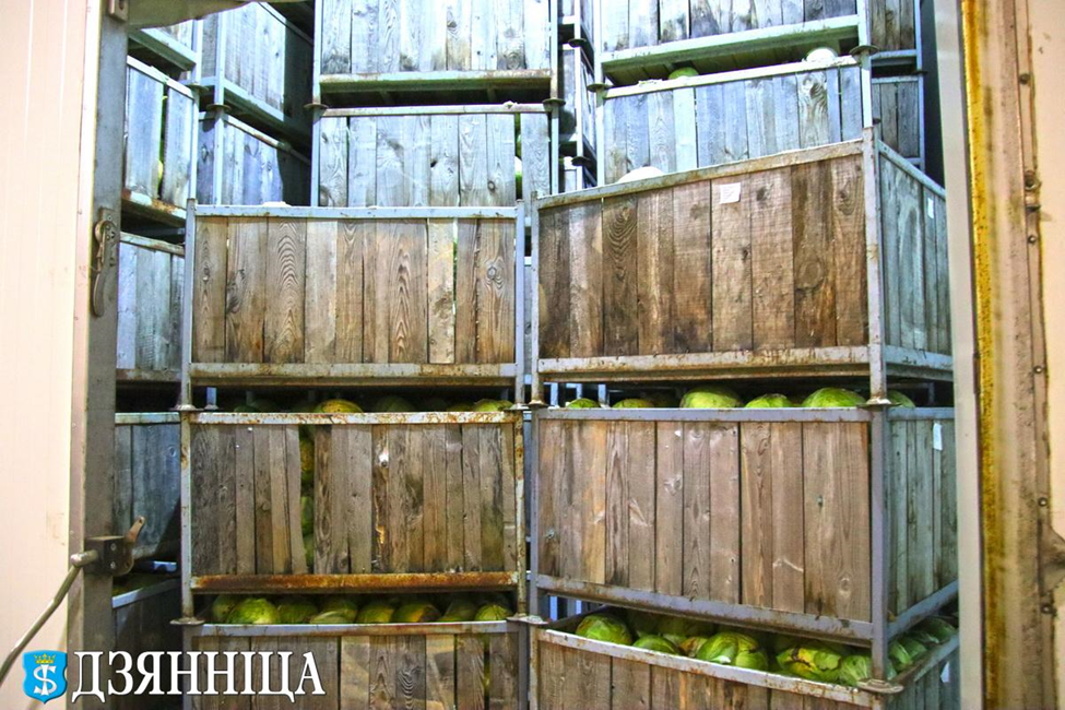 Большую частку працоўнага калектыву сховішча складаюць сезонныя работнікі. Зараз у памяшканні для сартавання прадукцыі яны рыхтуюць партыю капусты для крамаў гандлёвай сеткі “Еўраопт”. Жанчыны і мужчыны старанна ачышчаюць качаны і затарваюць іх у сеткі. Далей прадукцыя загружаецца ў транспарт. Вялікая рампа можа прыняць адначасова да дзесяці грузавікоў.