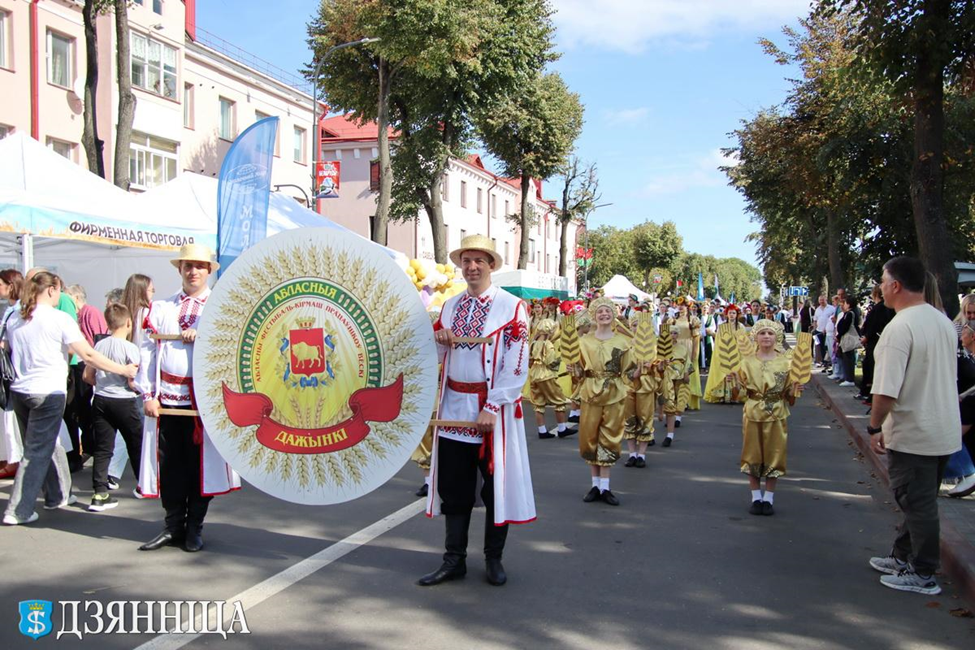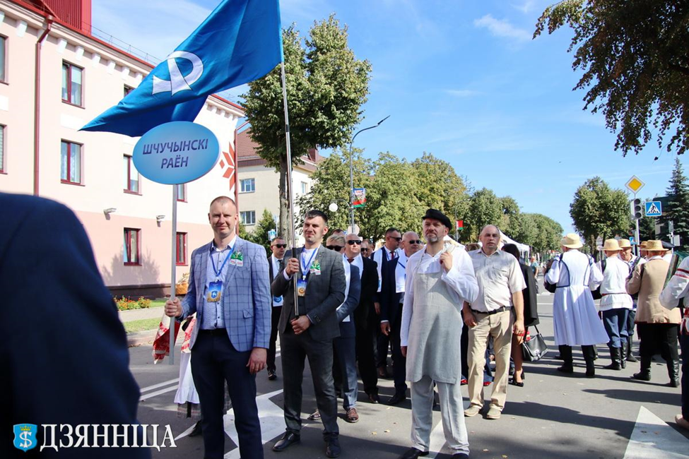 Традыцыйнае ўшаноўванне пачалося з шэсця «У гонар хлебаробаў». На чале калоны ехала Жытніца, якую суправаджалі байкеры. Гучнымі апладысментамі віталі і дэлегацыю Шчучынскага раёна: перадавікоў жніва СПУ “Пратасаўшчына”, ААТ “Васілішкі”, ААТ “Дэмбрава”.