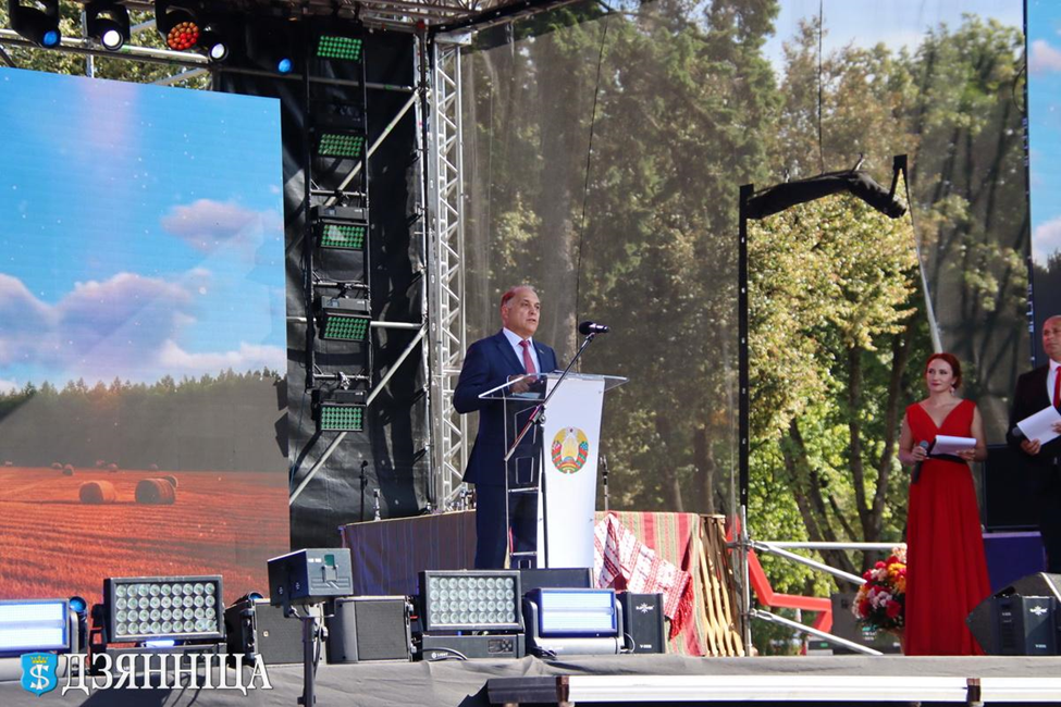 — На протяжении веков работа на земле остаётся фундаментом стабильного роста и благополучия страны. Сельское хозяйство – это дисциплина, расчёт и выносливость. Когда в городе ещё спят, в деревне уже кипит работа. Земледельцев отличает особая ответственность и любовь к земле, — отметил губернатор. — Сейчас уже позади многие месяцы напряжённой работы в полях, настало время подвести промежуточные итоги. В этом году специалисты агропромышленного комплекса вновь подтвердили свою способность эффективно организовывать производство. Погода каждый год испытывает на прочность наших аграриев. Но талант и знания наших агрономов, волевые и организационные качества руководителей хозяйств, а главное – самоотдача механизаторов и полеводов, водителей и операторов сушильных комплексов вновь удивили новой планкой валового сбора и урожайности. Намолочено в бункерном весе свыше 1 миллиона 760 тысяч тонн зерна. Средняя урожайность зерновых и зернобобовых – 51 центнер с гектара. Валовый сбор рапса составил 220 тысяч тонн, а средняя урожайность 30 центнеров с гектара, что является одним из лучших показателей в стране. Поздравляю всех с праздником! Желаю всем вам новых успехов на благо родной Беларуси.