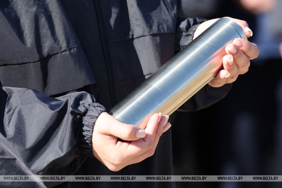 Главу государства встретили представители Белорусского республиканского союза молодежи, которые передали ему капсулу с посланием. В торжественной обстановке Александр Лукашенко заложил его в камень.