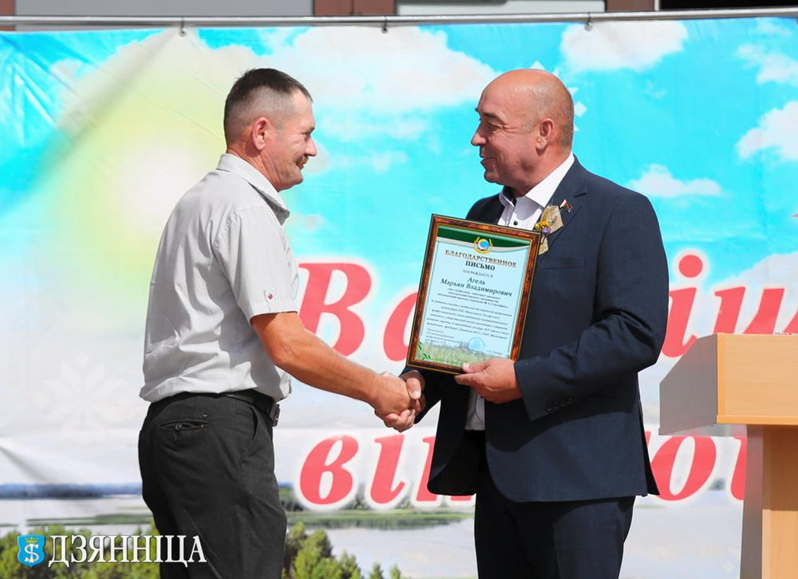 И, конечно, были названы победители жатвы. Директор Антон Бурнос вручил заслуженные награды лучшим комбайнерам и водителям. Обладателями первого места стали Евгений Василько, Виктор Юшкевич, Андрей Веробей, Павел Габис, Станислав Сергей и Сергей Кислый.